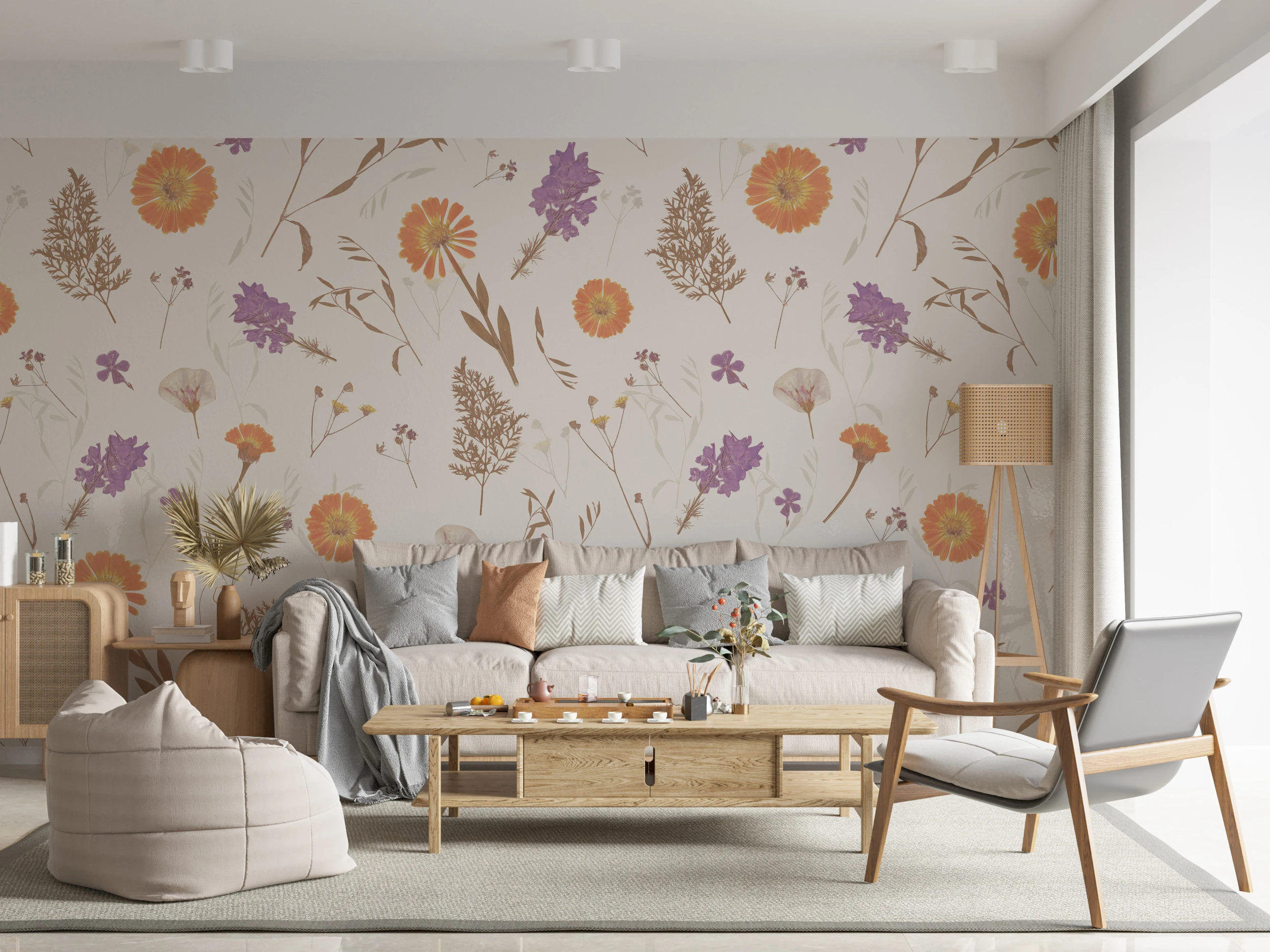 Ce papier peint fleurs séchées trouvera sa place idéale dans une chambre parentale où il accompagnera des nuits sereines, ou dans un salon cocooning pour créer un mur d’accent raffiné. Associez-le à du mobilier en bois clair – chêne blanchi ou hêtre naturel – pour amplifier cette connexion végétale. Les textiles en lin écru, les coussins en velours vieux rose et les accessoires en laiton patiné sublimeront cette palette douce. Pour un style slow living assumé, mariez ce revêtement avec des plantes vertes aux feuillages graphiques et des luminaires en fibres naturelles.